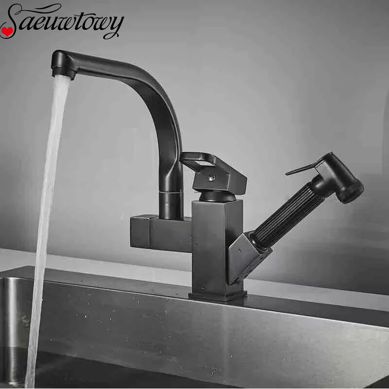 Name: Sink Faucet Pull-Out Cold-Dishwasher Copper Black Kitchen Saeuwtowy Rotating-Sink Hot