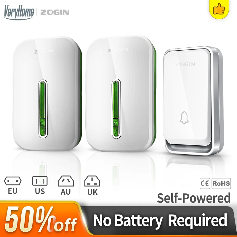 Best Hardware from FunHome Store for Doorbell-Night-Light No-Battery Bell-1 Self-Powered Cordless ZOGIN 2-Button Waterproof